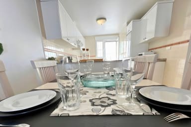 The fully equipped kitchen, which opens onto a large living room, offers everything you need to cook at home: dishwasher, oven, microwave, coffee maker, kettle, toaster and various utensils. The living area is perfect for sharing meals or relaxing in a warm atmosphere.