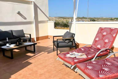For those who wish to explore the surrounding area, a city bus serves the Vistabella golf course, allowing you to easily reach Torrevieja and its lively atmosphere, as well as the La Zenia shopping centre for a complete shopping experience. The golden sandy beaches of Guardamar and Torrevieja are only a 25-minute drive away, perfect for sunny days by the sea.