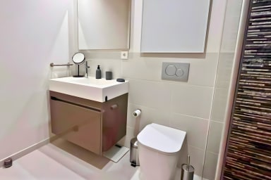 La Luzia is a new and elegant flat located in Torrevieja, between the sought-after neighbourhoods of Punta Prima and Los Altos. On the ground floor of a modern residence with a tree-lined garden and large communal swimming pool, it offers a bright, quiet and comfortable setting. The apartment can accommodate up to 6 guests and has three bedrooms: a master suite with a double bed and en-suite bathroom, a second bedroom with a double bed, and a third bedroom with two single beds that can be converted into a double bed.