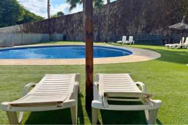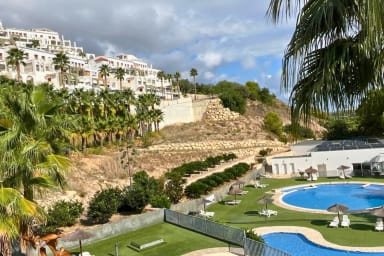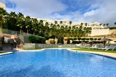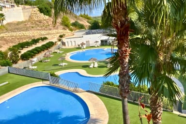 Los viajeros podrán acceder a todas las comodidades del complejo Xeresa del Monte: las tres piscinas con cascadas y jacuzzis, el gimnasio, las zonas verdes privadas, el parque infantil y el club social.