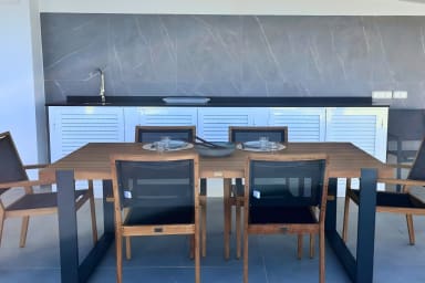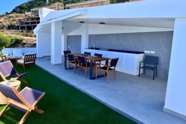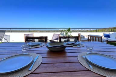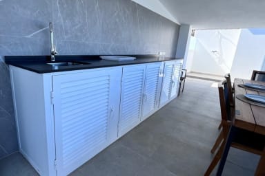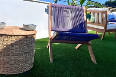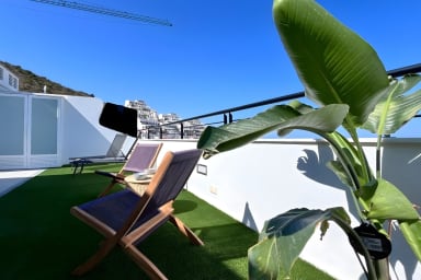 La verdadera ventaja de este alojamiento es su magnífico solárium privado, totalmente equipado: cocina de verano con plancha, zona de comedor, muebles de jardín y espectaculares vistas de los alrededores. El lugar perfecto para tomar el sol, compartir una comida o admirar las puestas de sol.