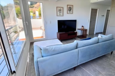 Alba Blanca es un fabuloso ático en el complejo Xeresa del Monte, ideal para familias, parejas o estancias con amigos. Cuenta con 3 piscinas con jacuzzi, 3 dormitorios, uno de ellos suite, y un solárium equipado con unas vistas espectaculares. Perfecto para vacaciones, relax o teletrabajo. A 10 minutos de la playa de Gandía.