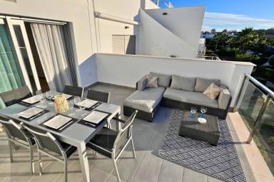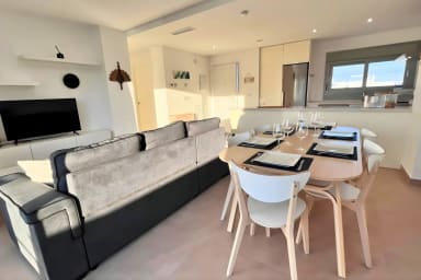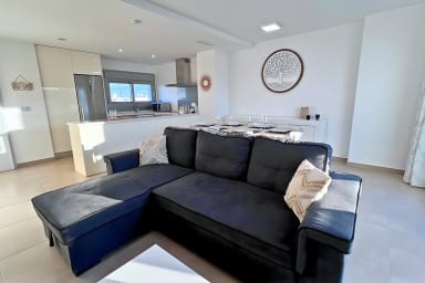 Bienvenido a Sol y Verde, un apartamento nuevo y moderno situado en la primera planta del complejo Capri 3, en el corazón del Golf Vistabella. El alojamiento ofrece un amplio y luminoso salón-comedor abierto a una cocina totalmente equipada, ideal para disfrutar de un espacio acogedor y confortable.