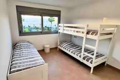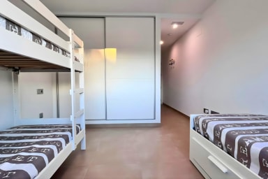 - un dormitorio con tres camas individuales, una de ellas litera, que ofrece una flexibilidad ideal para alojar a varios huéspedes, con cuarto de baño privado.