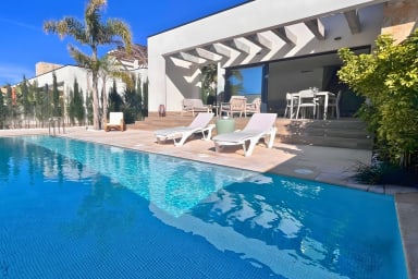 Diseñada para ofrecer comodidad, intimidad y serenidad, la villa cuenta con una magnífica piscina privada rodeada de cuidados espacios exteriores, perfectos para disfrutar plenamente del clima mediterráneo.