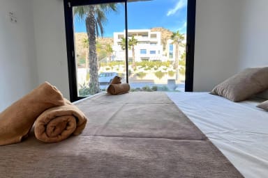 La villa ALMIRA goza de un entorno natural privilegiado, entre colinas y paisajes mediterráneos. El complejo es conocido por su campo de golf de renombre internacional y también es un punto de partida ideal para practicar senderismo y ciclismo, con numerosas rutas accesibles directamente desde la finca.
